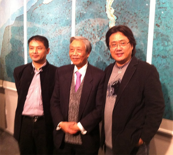 左起外灘游艇俱樂部總經(jīng)理張耀偉、著名畫家陳家泠、公司董事長(zhǎng)張偉宗